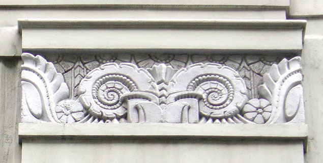 There are some outstanding Art Deco motifs along the upper part of this façade at 66 Lorne Street. They feature the abstract fountain forms originally from French designers, and adopted globally, particularly in the United States. This building was once the Grand Lodge of Ancient Free and Accepted Masons of New Zealand, and has also been a car showroom and garage as well as a factory for home appliances. It later became the Office of State Advances, which subsequently became known as the Housing Corporation and Housing New Zealand. In the mid-1990s it became the Senior College of Education.