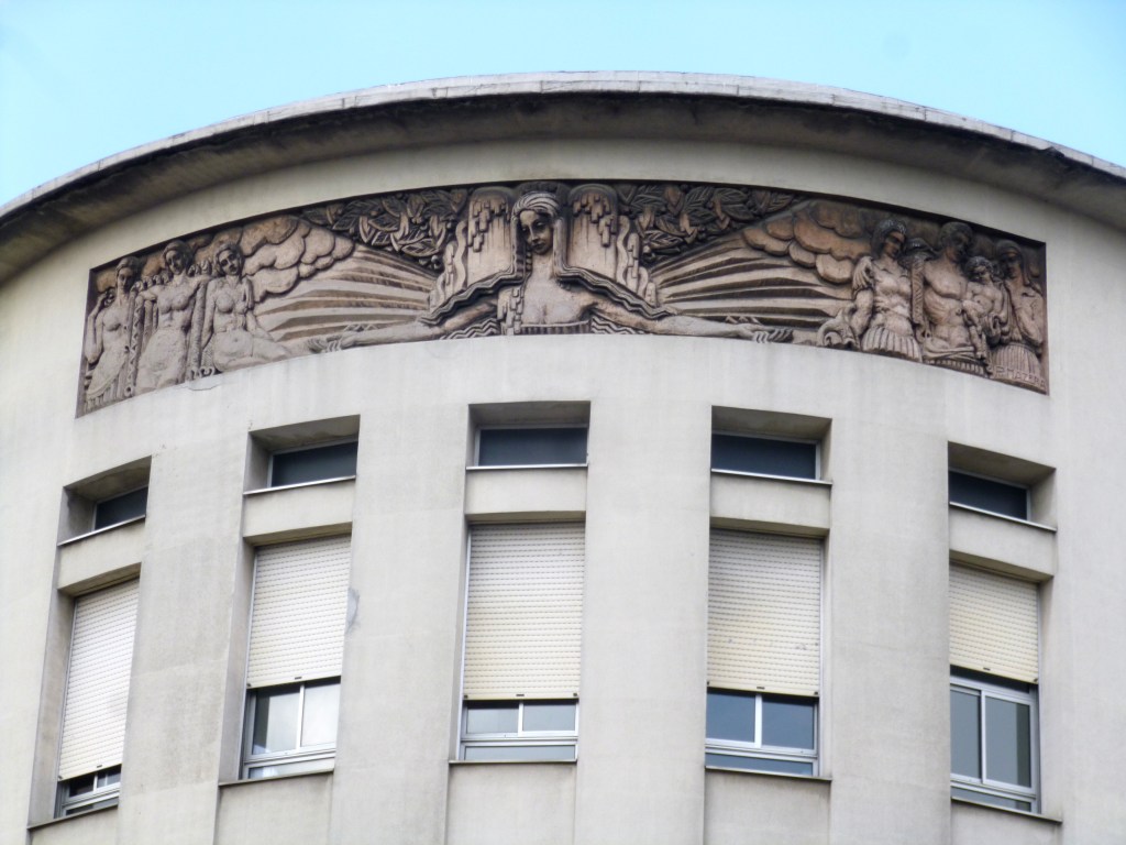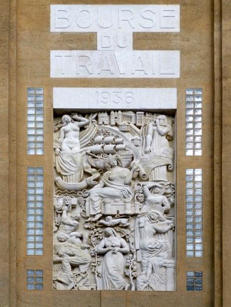 Sculptor Alfred Janniot created the allegorical bas-relief stone carving for the façade. This large bas-relief depicts activities which contributed to the city’s wealth and good fortune, notably grape growing and wine making. There is a clear connection between it and the even larger relief Janniot made for the Palais du Tokyo in Paris at around the same time.
