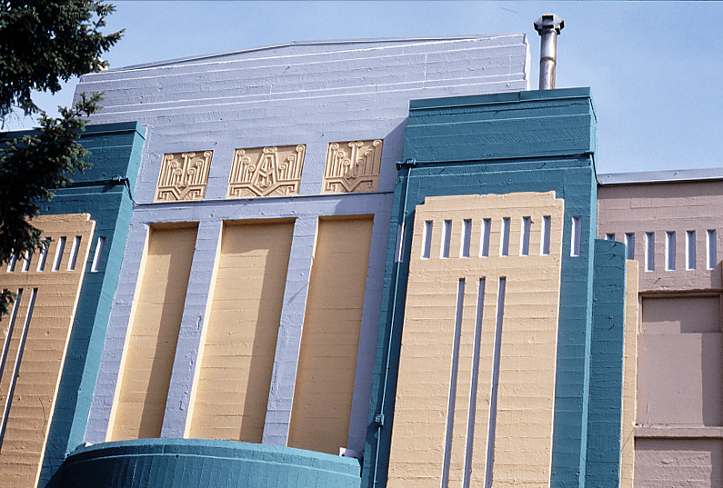 Another building from 1929, the Power Block was given an exterior full of original, bright Art Deco colour by its architects Townley and Matheson. This building, at 817 Granville, was covered in superb, Art Deco, terracotta decoration. Amazingly, at one time there were plans to completely completely demolish it, but it was argued and accepted that the façade was of exceptional quality and so it was preserved and survived.