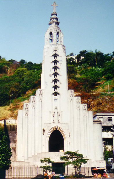 Known locally as the ‘Igreja de Santa Terezinha do menino Jesus’, or ‘Church of Saint Teresa of the boy Jesus’, this church was opened in 1935. It was designed by the architects Arquimedes Memória and Francisque Cuchet who blessed it with a stunning modern bell tower. The painter Carlos Oswaldo provided it with stained glassed windows and mosaiacs. It also has a dynamic location being next to a main road that leads from the edge of the Botafogo neighbourhood and into the tunnel to Copacabana. It became a listed heritage building in 1996.